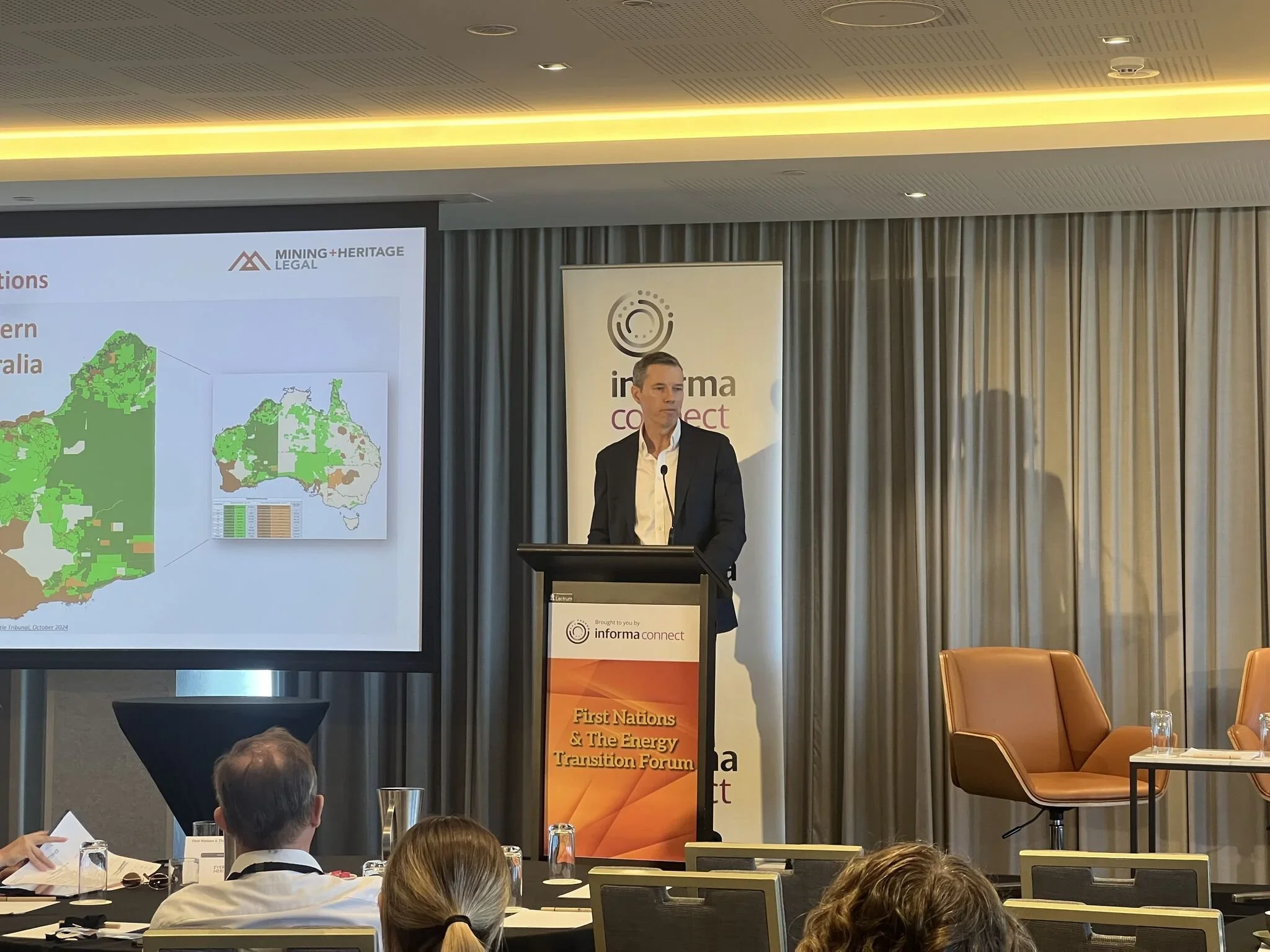 Mining + Heritage Legal Director Jack Cullity speaks at Informa Connect “First Nations and the Energy Transition Forum in Perth, 2024.